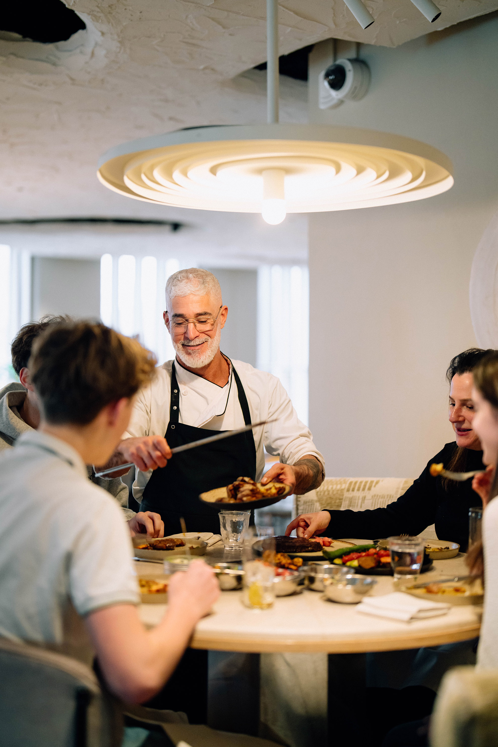De brunch trapt af met luchtige frena uit de houtoven, het traditionele brood waar chef Ori Geller mee opgroeide. De structuur doet denken aan pita, maar is voller en rijker van smaak. Op tafel verschijnen huisgemaakte dips en toppings zoals hummus van witte bonen, chili-paté en geroosterde pompoensmash.